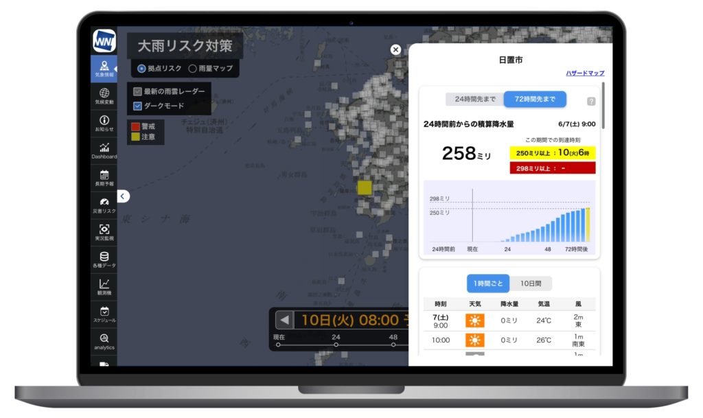 とくに、雨による二次災害(土砂災害や河川氾濫など)は被災者だけでなく支援者自身の命にも関わります。そのため、活動現場でリアルタイムに気象リスクを把握し、安全を判断できる仕組みが求められていました。